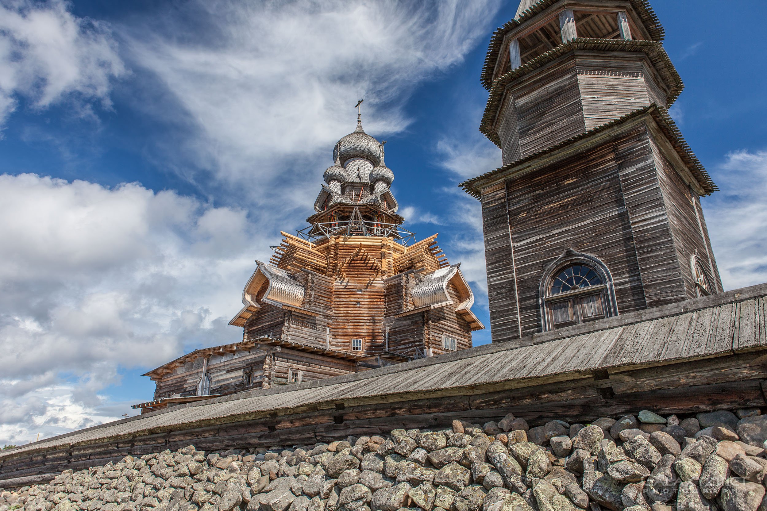 Die Insel Kischi im Onegasee ist mit ihrem Ensemble von Kirchen in Holzbauweise ein ganz besonderes Freiluftmuseum. Seit 1990 gehört Kischi zum UNESCO-Weltkulturerbe und umfasst etwa 80 Gebäude der karelischen Holzbaukunst. Kischi, auf russisch Кижи, kommt vom karelischen kischat für „Spiele“.